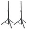 - Two heavy duty, telescoping speaker stands, each with tripod base